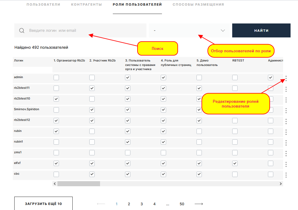 Раздел "Роли пользователей" предназначен для ручного назначения ролей пользователям.