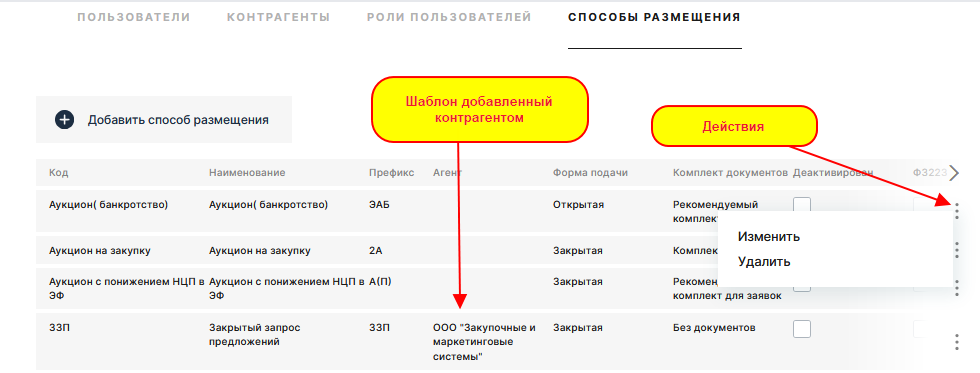 В данном справочнике так же видны шаблоны созданные пользователями организаторов торгов в разделе "Организатору"-"Мои шаблоны процедур".