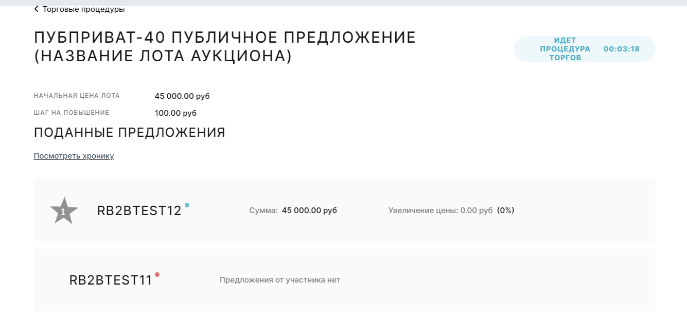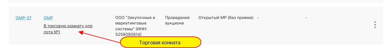 Торговая комната аукциона: