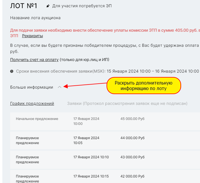 даты основных мероприятий по процедуре. Обратите
